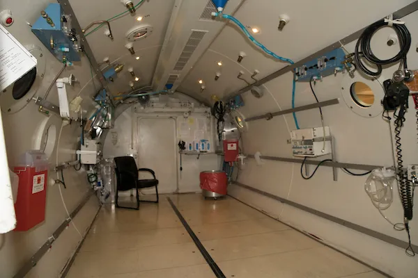 - Specially trained medical personnel remain inside the chamber to monitor every session.