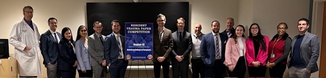 Region III of the American College of Surgeons (ACS) Committee on Trauma (COT) held the annual Resident Paper Competition at the R Adams Cowley Shock Trauma Center at the University of Maryland Medical Center, in Baltimore on December 7, 2024. Individuals from Delaware, Pennsylvania, Maryland, Virginia, West Virginia, and the District of Columbia presented their research on current topics in trauma.